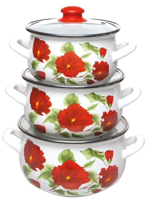 - кастрюли: 2.1 л, 3.1 л, 4 л; 3 крышки