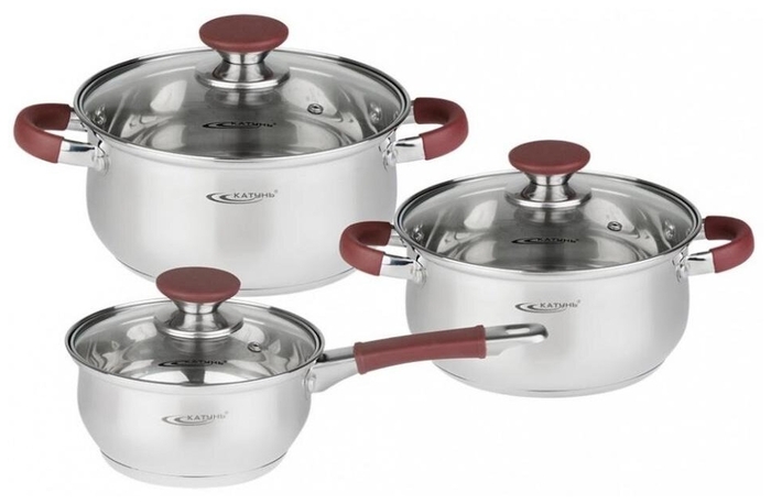 Набор кастрюль Катунь Берта КТ15-B, 6пр (ковш 1,5л + 2,0л + 3,0л)