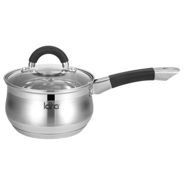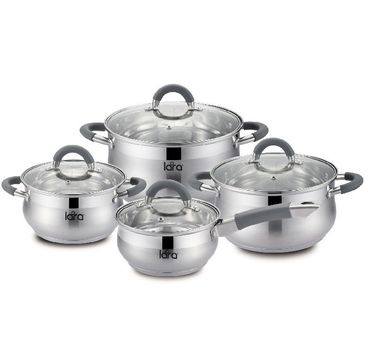 Классический набор кастрюль LARA серии “BELL” с сотейником – это понятный дизайн и безопасность в использовании. Вы точно не ошибётесь если остановите на нём свой выбор. Внутренняя мерная шкала облегчает процесс приготовления пищи и Вы сможете точно следовать выбранной рецептуре. Набор выполнен из высокоуглеродистой нержавеющей стали марки AISI201 с зеркальной полировкой. Для крышек использовали жаропрочное стекло с паровыпуском и стальным ободом C-формы плотно прилегающим к стенкам. Полые ручки на заклёпках с ненагревающимися силиконовыми накладками серого цвета. 5-слойное индукционное капсулированное дно подходит для всех типов плит.