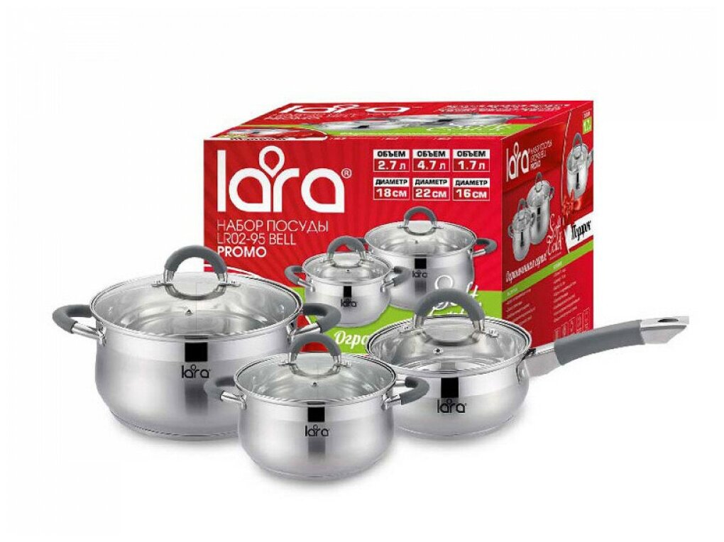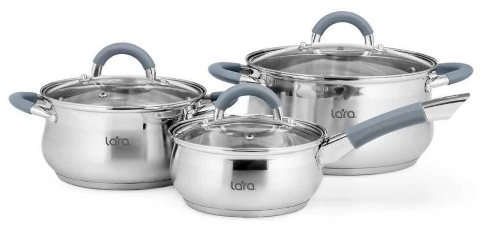 кастрюли: 2.6 л, 4.7 л; ковш: 1.6 л; 3 крышки