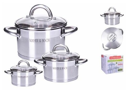 материал крышек: стекло, сталь; материал ручек: сталь; диаметры кастрюль: 16 см,18 см, 20 см