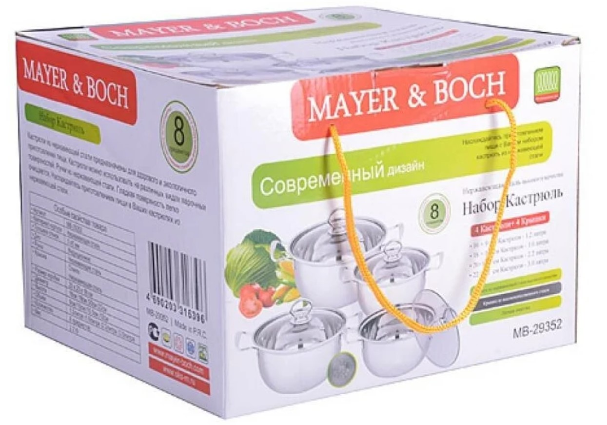кастрюли: 1.2 л, 1.6 л, 2.2 л, 3 л; крышка (4 шт.)