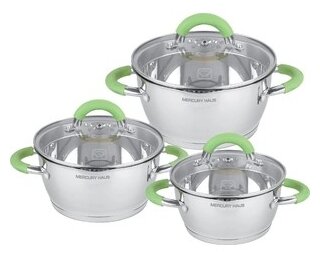 - кастрюля с крышкой 3,3 л (20*11 см); кастрюля с крышкой 2,3 л (18*10 см); кастрюля с крышкой 1,5 л (16*9 см)