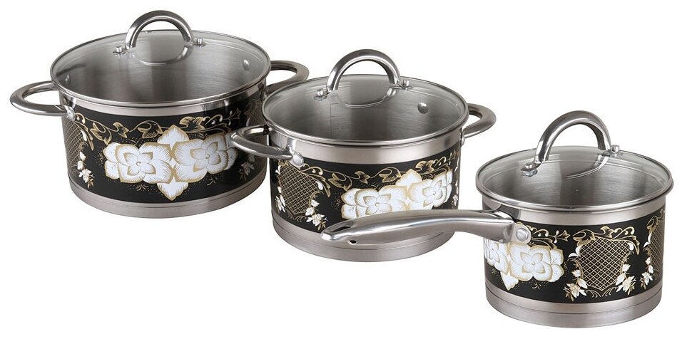 Комплектация ковш: 1.5 л; кастрюли: 3 л, 5 л; 3 крышки