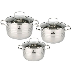 Кастрюли торговой марки "RASHEL" выполнены из высококачественной нержавеющей стали (18/10 - соотношение хром/никель). Кастрюли удобны в использовании, за ними легко и просто ухаживать. Многослойное капсульное дно равномерно распределяет тепло и долгое время сохраняет достигнутую температуру, тем самым обеспечивает равномерный нагрев и равномерную подачу тепла во внутрь кастрюли.