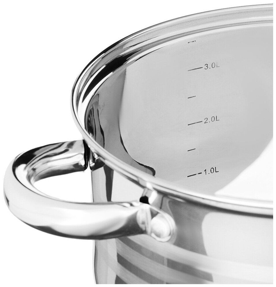 материал крышек: стекло; материал ручек: сталь; многослойное дно; мерная шкала: есть