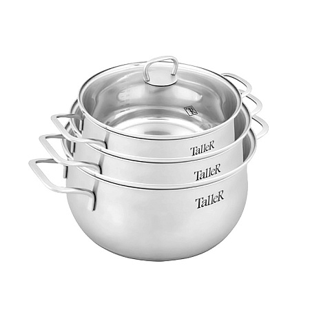 Набор посуды изготовлен из высококачественной нержавеющей стали марки 18/10:
