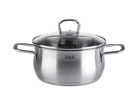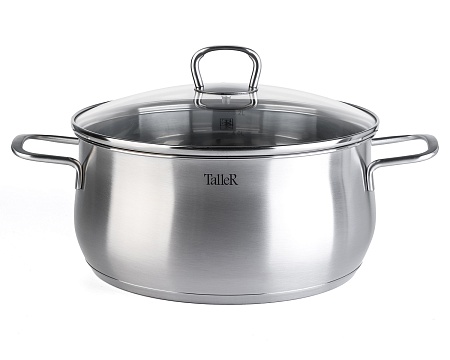 Толщина стенки - 0,6 мм, толщина дна - 2,8 мм. Полировка матовая снаружи, зеркальная внутри. Крышки из жаропрочного стекла со стальным ободом с отверстием для выхода пара. Ручки из нержавеющей стали на сварке. Есть отметки литража.