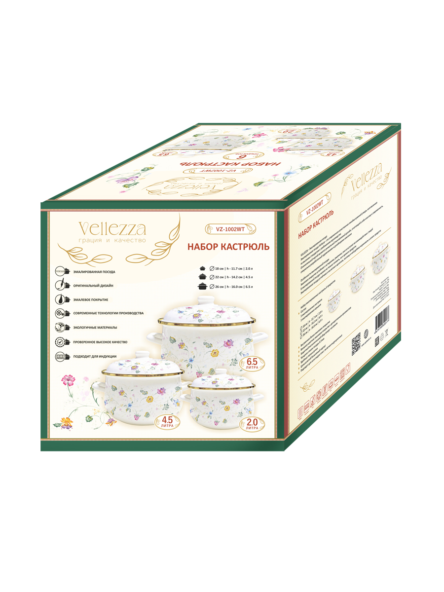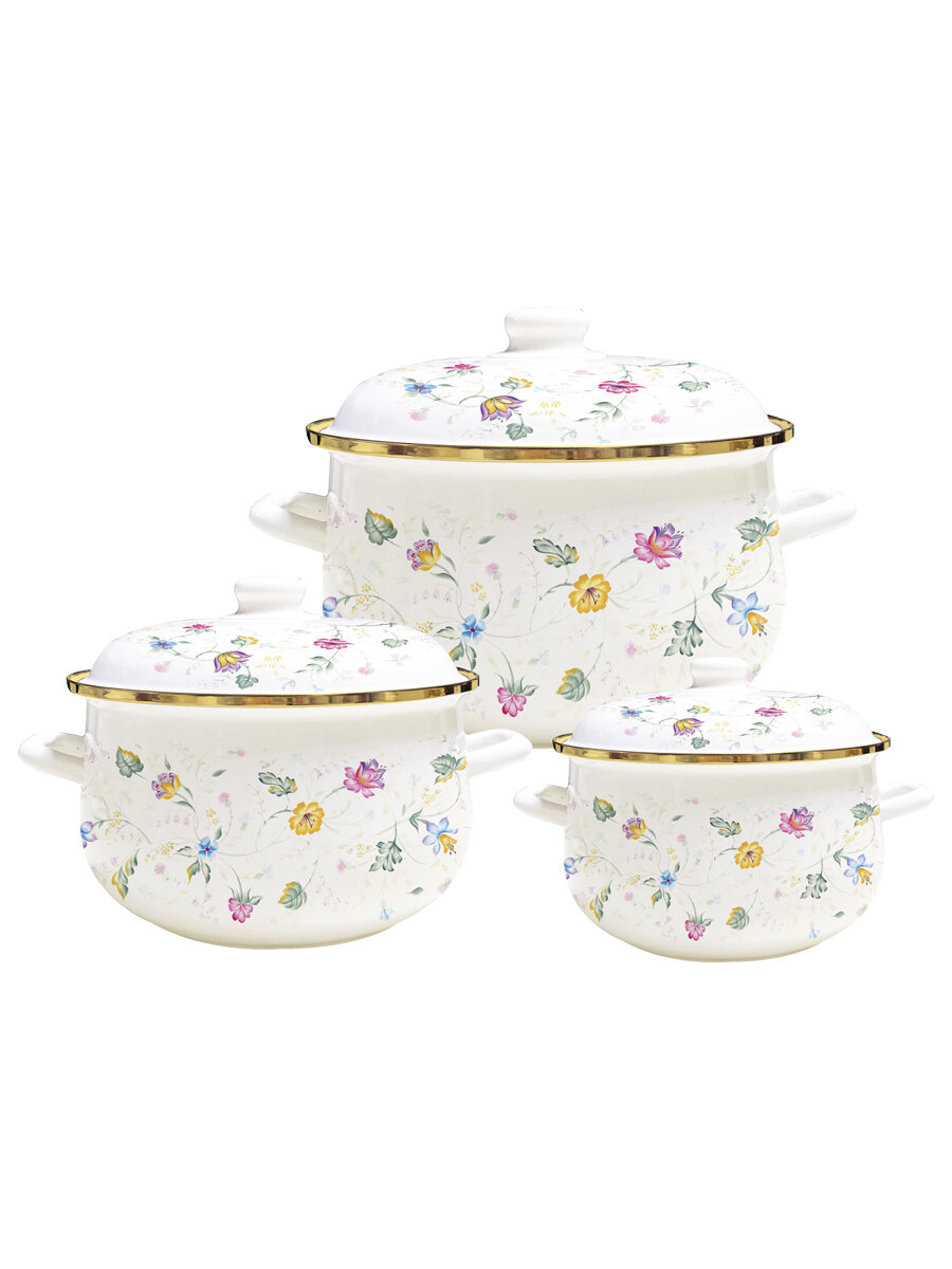 3 эмалированные кастрюли, 3 эмалированные крышки