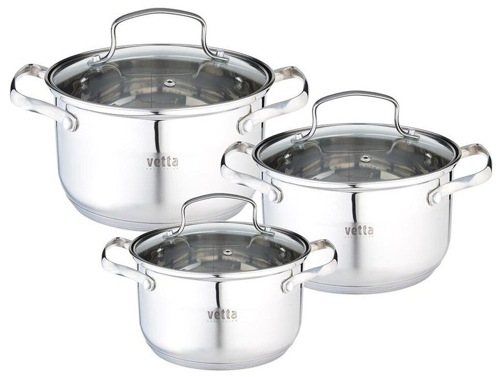 кастрюли: 1.9 л, 2.6 л, 3.5 л; 3 крышки
