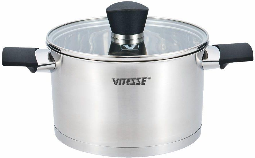 Набор посуды Vitesse Dorian из высококачественной нержавеющей стали. Многослойное термоаккумулирующее дно с прослойкой алюминия для быстрого нагрева и равномерного распределения тепла по поверхности посуды. Крышка из прозрачного термостойкого стекла с ободом из нержавеющей стали.