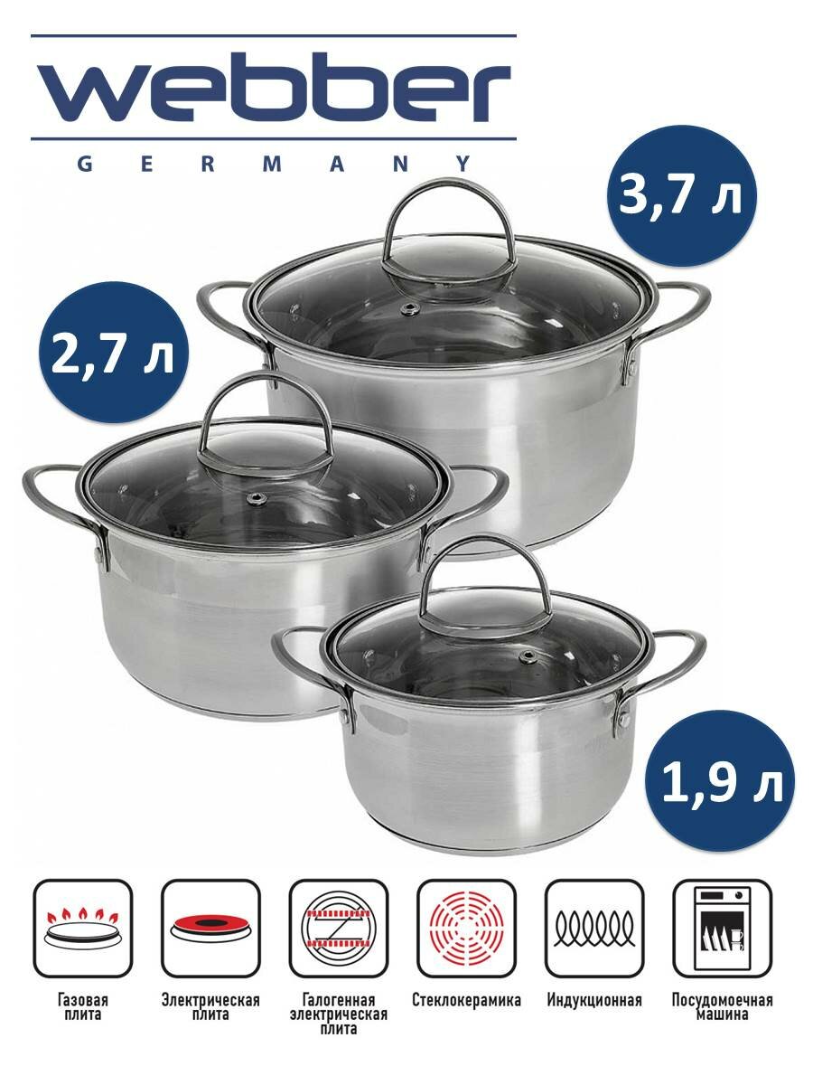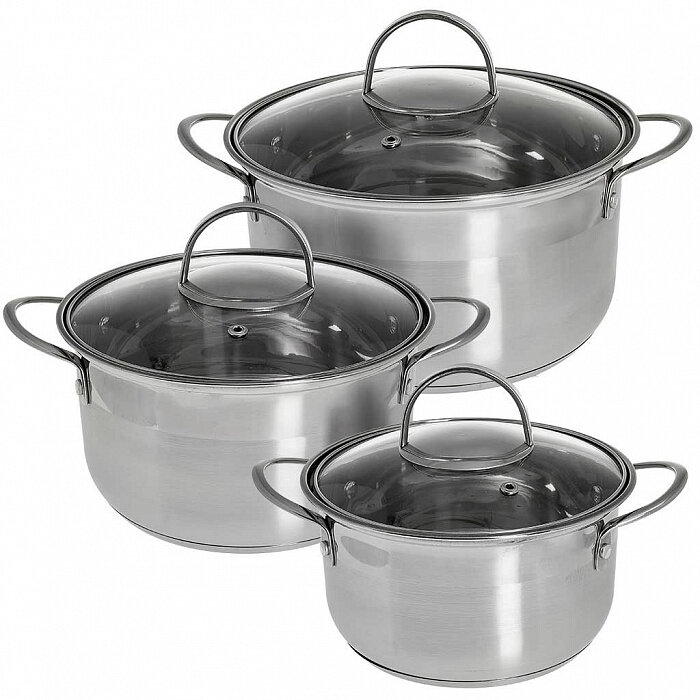 кастрюля с крышкой 16×9,5см; 1,9л кастрюля с крышкой 18×10,5см; 2,7л кастрюля с крышкой 20×11,5см; 3,7л