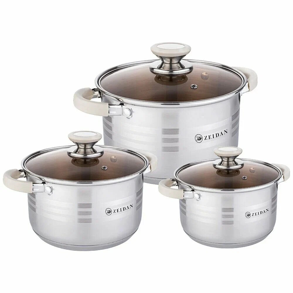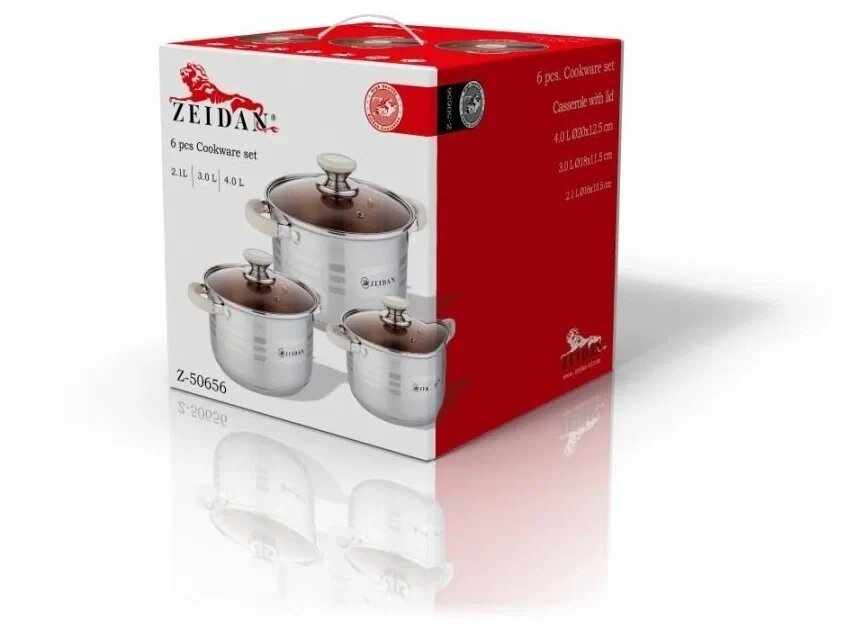 Кастрюля с крышкой диаметром 16 см 2,1 л; Кастрюля с крышкой диаметром 18 см 3 л; Кастрюля с крышкой диаметром 20 см 4 л.