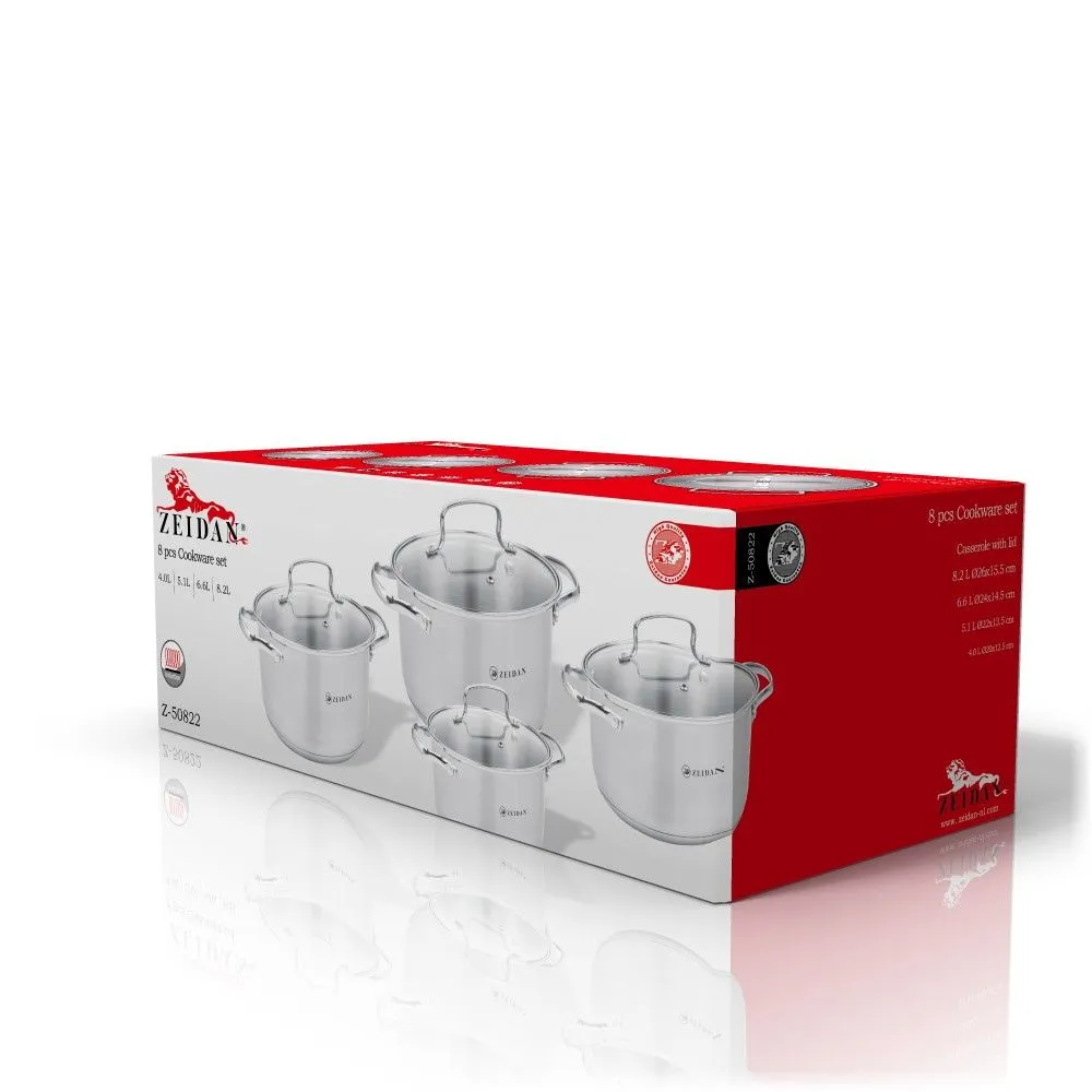 (4 КАСТРЮЛИ С КРЫШКАМИ: 4,0 Л (d20 см ), 5,1 Л (d22 см), 6,6 Л (d24 см ), 8,2 Л (d26 см )