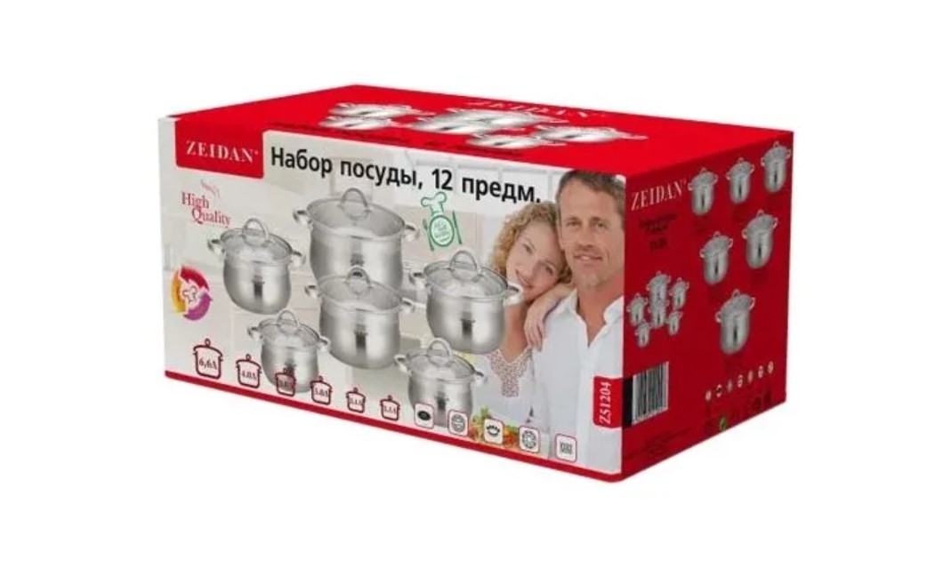 Набор посуды из 6 предметов. 3-х слойное термоаккумулирующее дно позволяет готовить с минимальным количеством воды и жира, или же совсем без них. Подходит для всех видов плит. Посуда изготовлена из пищевой высококачественной нержавеющей стали. Комбинированная полировка снаружи, зеркальная внутри. Шкала литража, ручки с силиконовым покрытием, крышки-стекло. Упаковка – подарочная коробка с пластиковой ручкой.
