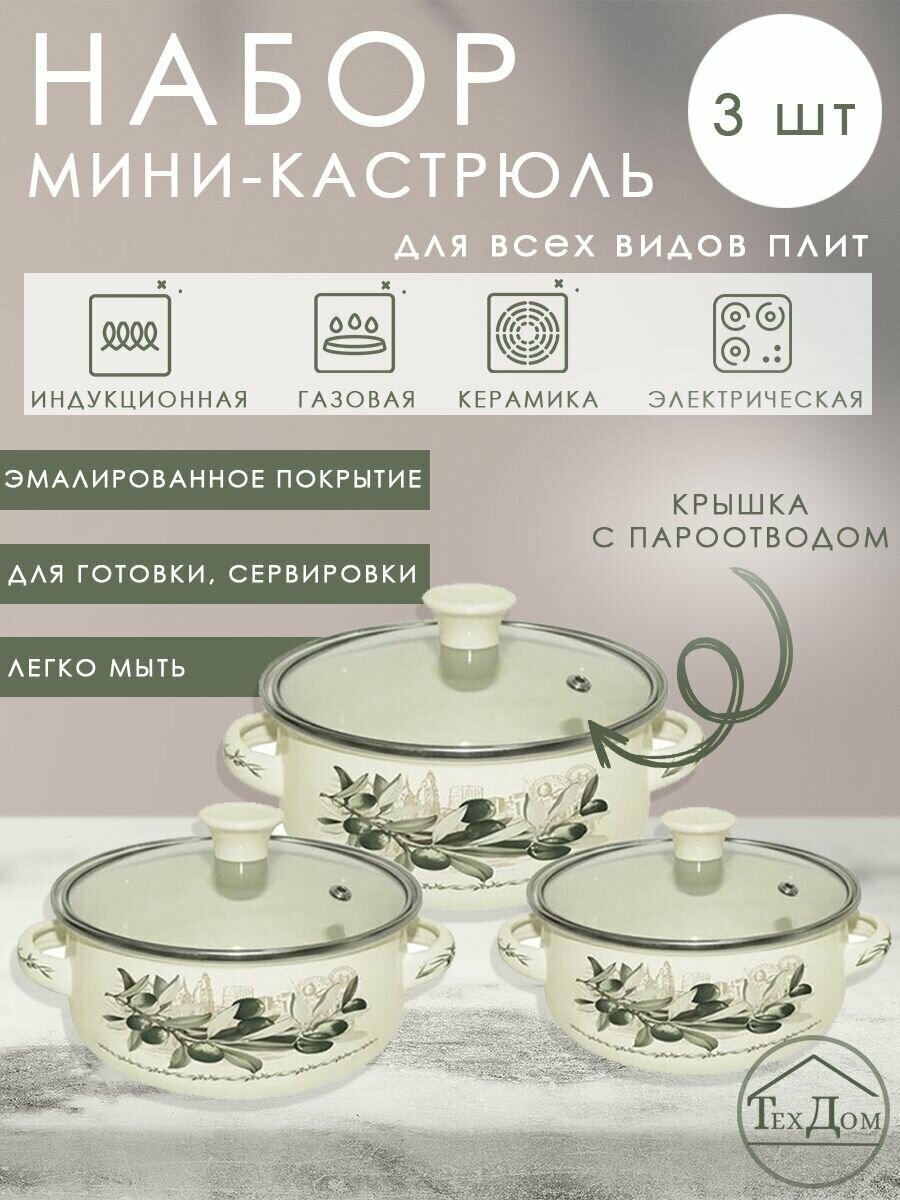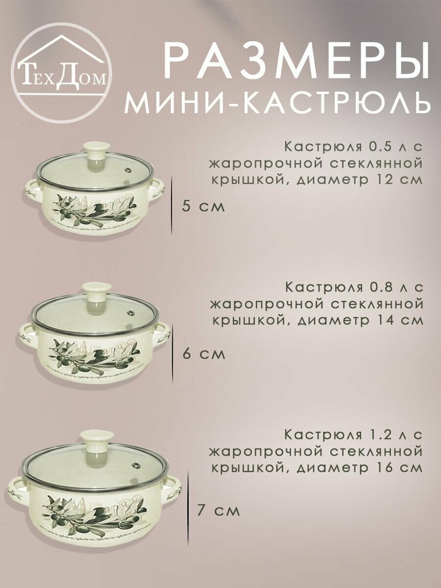 основной материал крышек: стекло; материал ручек: сталь; диаметр кастрюль: 12 см, 14 см, 16 см