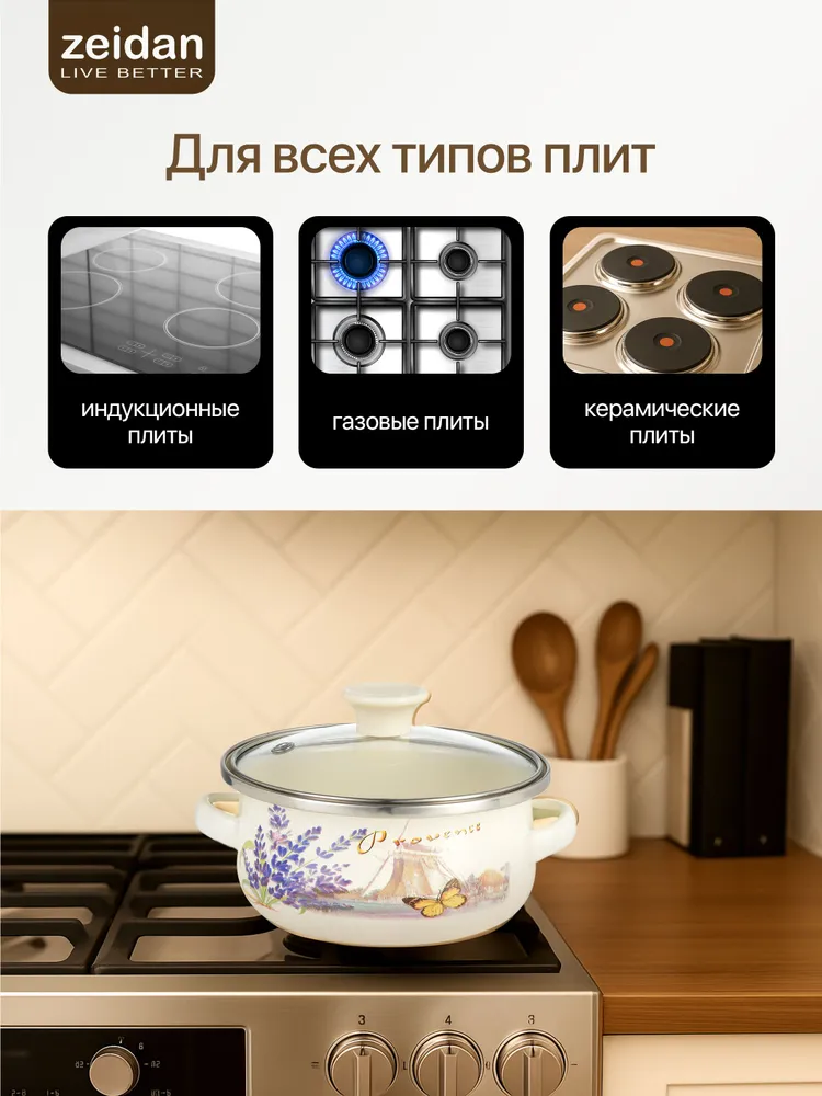 Совместимые плиты: Для индукционных плит, Для газовых плит, Для стеклокерамических плит, Для электрических плитОтзывы