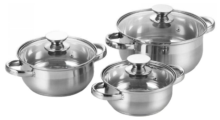 кастрюли: 1.5 л, 3 л, 5 л; 3 крышки