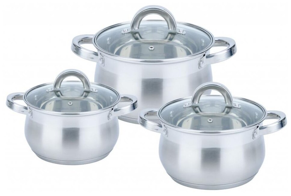 3 кастрюли: 2.1 л, 2.9 л, 3.9 л; крышки (3 шт.)