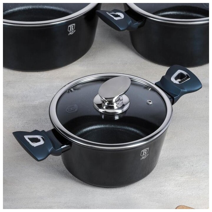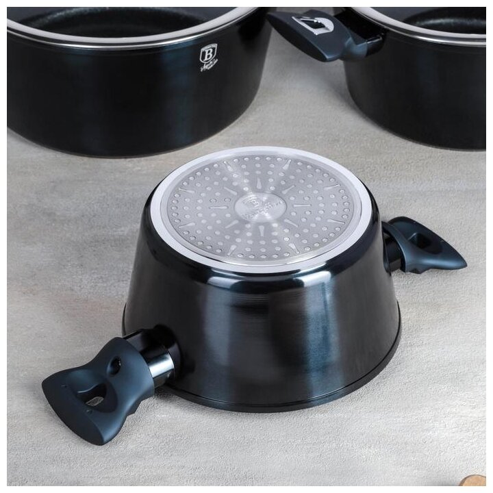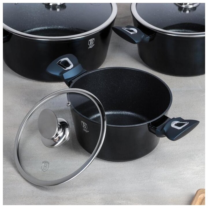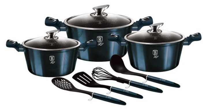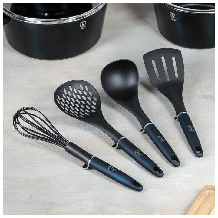 3 кастрюли: 2.5 л, 4.1 л, 6.1 л; 3 крышки; венчик; половник; шумовка; лопатка