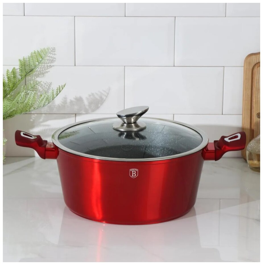 материал крышек: стекло; материал ручек: бакелит; материал подставок: бакелит; сковороды: 20х4.5 см, 24х6.5 см, кастрюли: 20х10 см, 24х12 см, 28х12 см; лопатка, венчик, половник, шумовка; нож поварской, нож универсальный, нож для фруктов