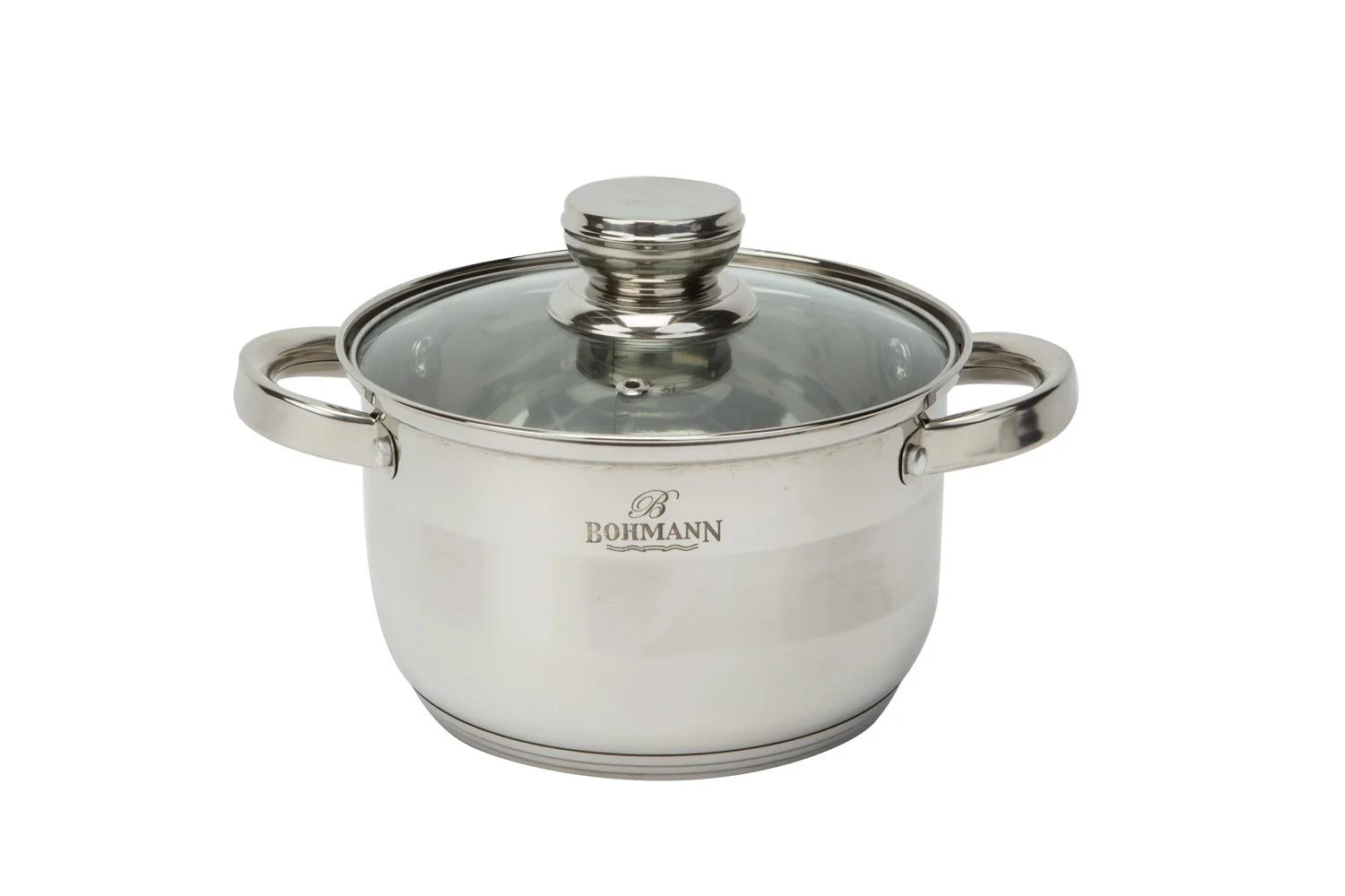 материал крышек: стекло; материал ручек: сталь; материал подставки: бакелит; многослойное дно; материал крышек: стекло; материал ручек: сталь; многослойное дно; мерная шкала; кастрюли: 18х11.5 см, 20х12.5 см, 22х13.5 см; ковш: 16х10.5 см