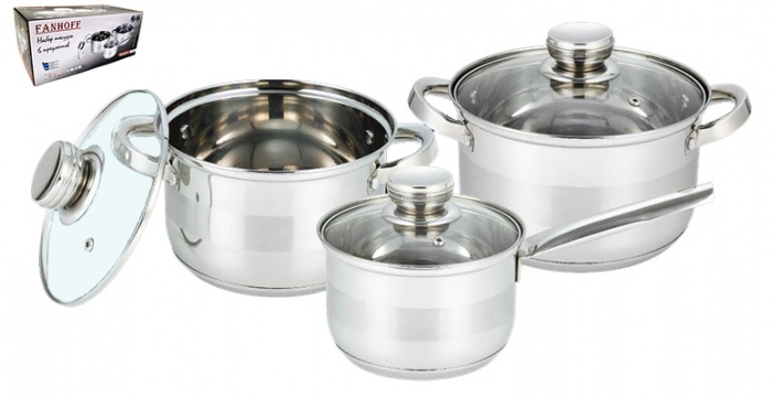 Кастрюля с крышкой (2,9 л): D - 18 см, h - 11,5 см (диаметр дна - 15 см)