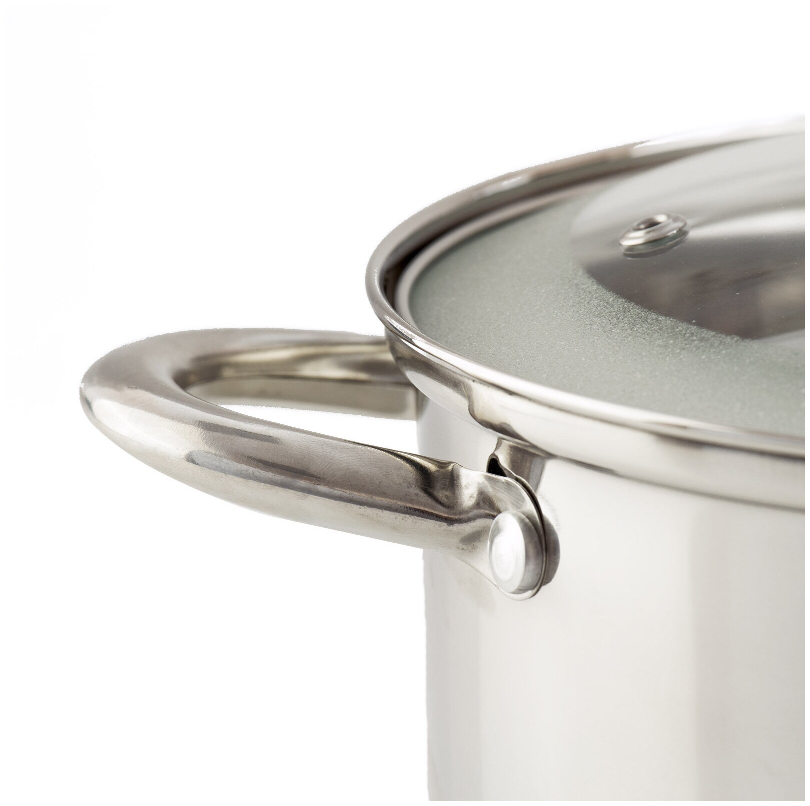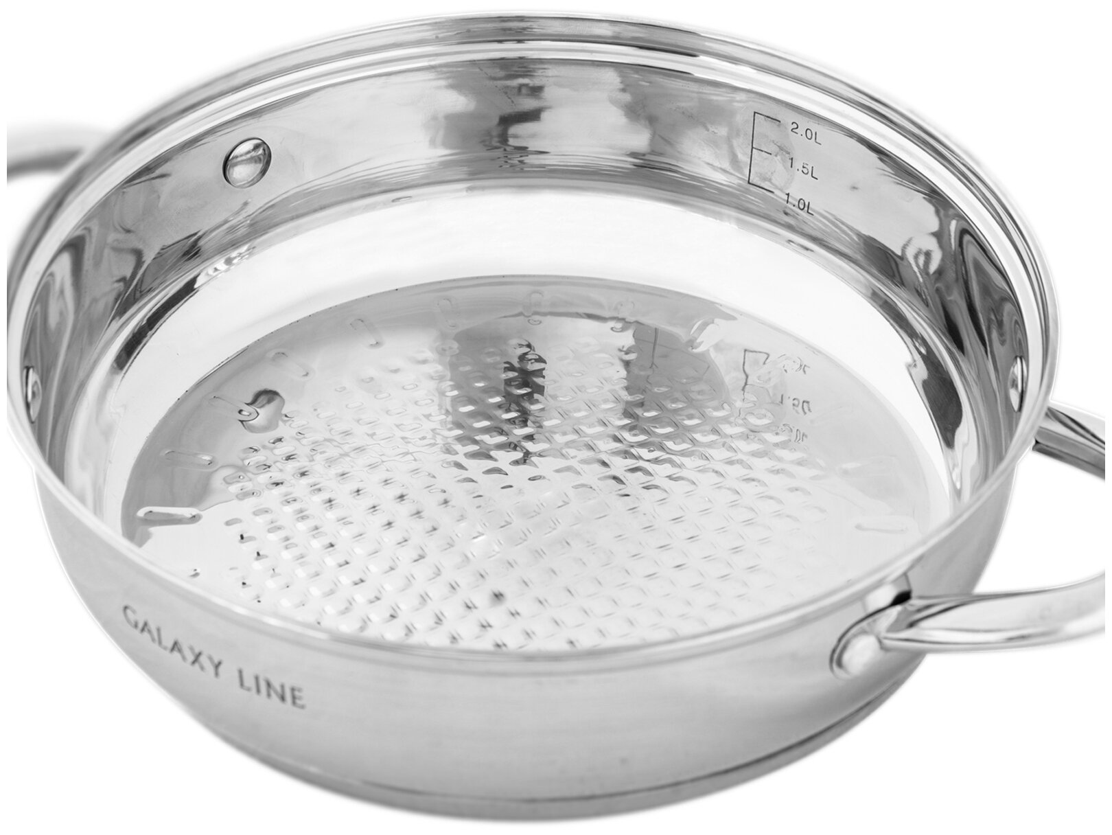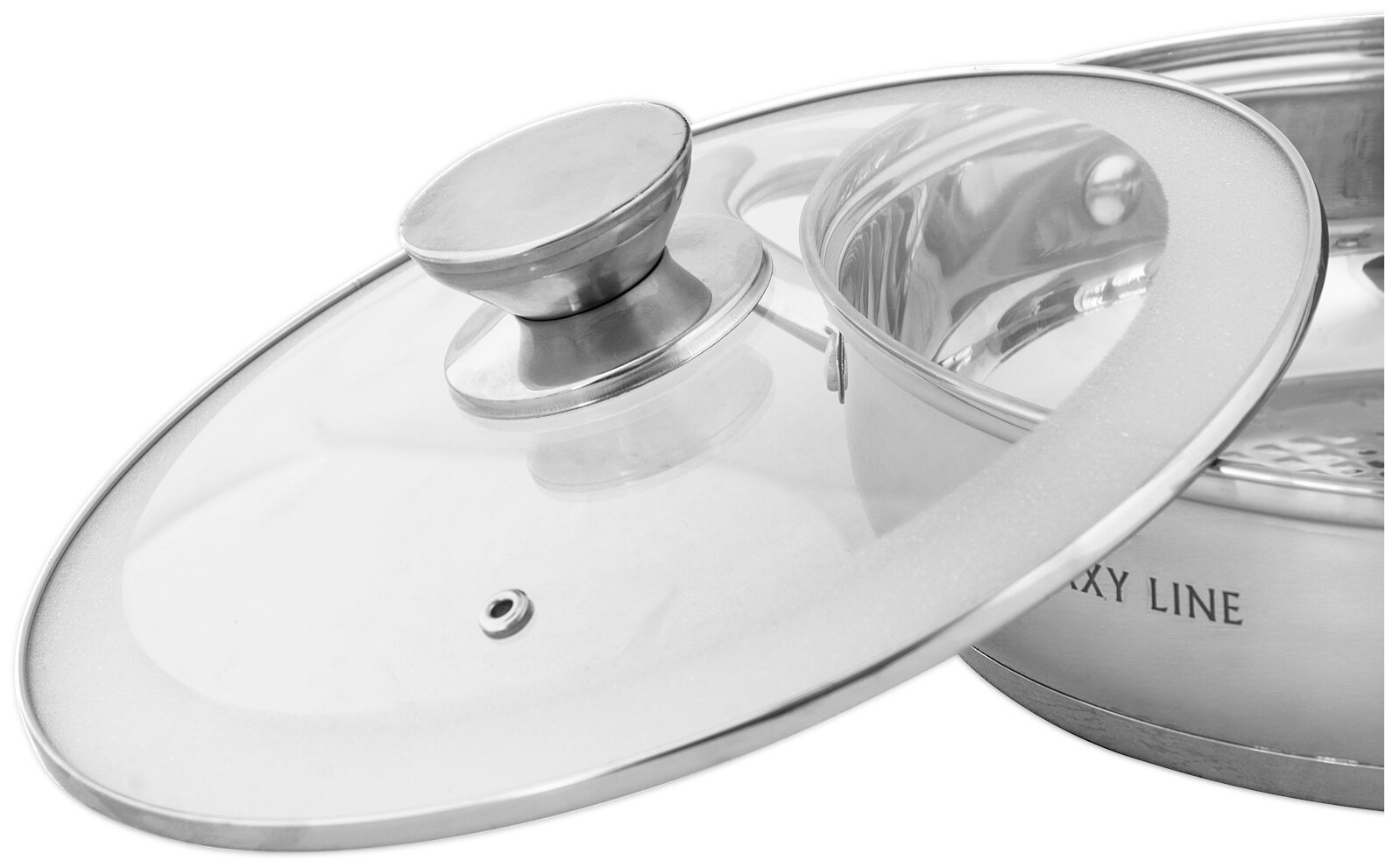 материал крышек: стекло, сталь; материал ручек: сталь; многослойное дно; мерная шкала: есть