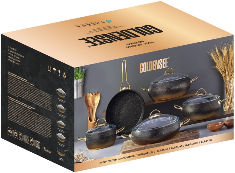Набор посуды для готовки GOLDEN SEE 9 предметов, алюминий (GLS-0439C)