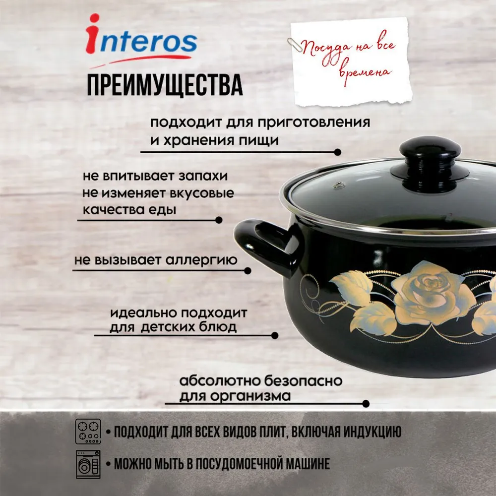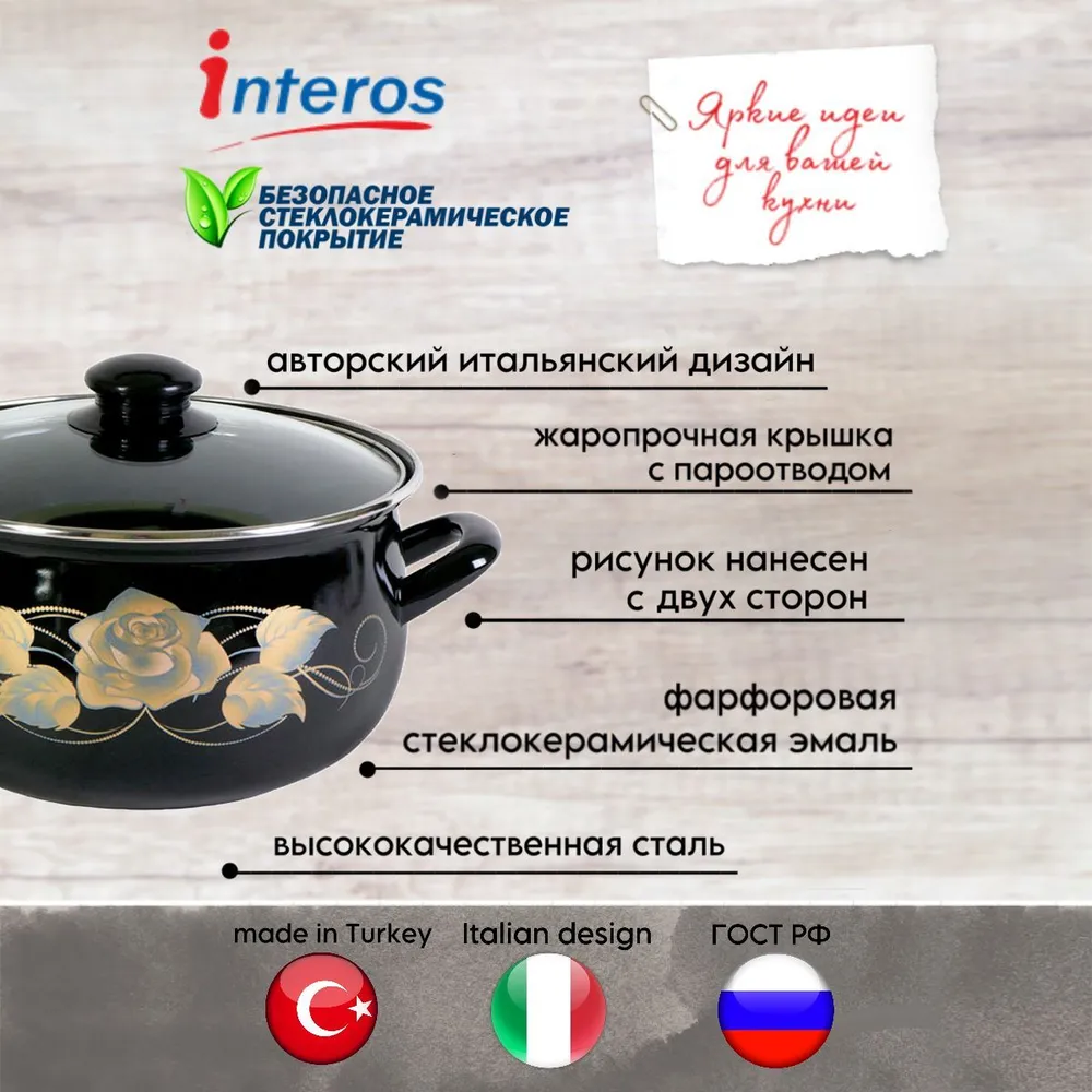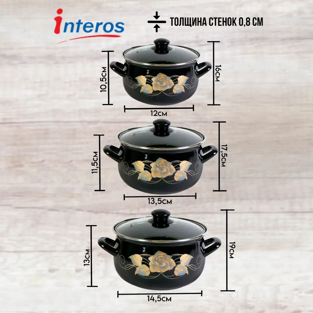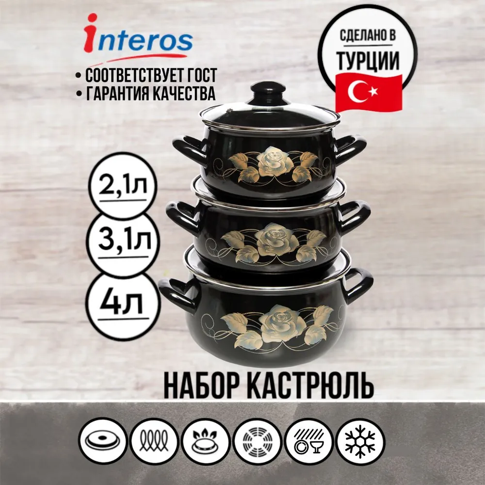 Эмалированная посуда Interos изготовлена из высококачественной стали и покрыта плотной двухслойной стеклокерамической эмалью с содержанием фарфора. Благодаря такому покрытию посуда не искажает вкус продуктов, не вызывает аллергию, инертна и устойчива к пищевым кислотам, не вступает во взаимодействие с продуктами. Кастрюли производятся из экологичного природного сырья и соответствуют стандартам ГОСТ. Набор в подарочной упаковке - 3 кастрюли (2,1л; 3,1л; 4,0л). Кастрюльки сферической формы обеспечивают правильную циркуляцию пара внутри. Гладкая не пористая поверхность емкости обеспечивает простой и легкий уход. Уникальный дизайн посуды украсит любую кухню и создаст атмосферу домашнего уюта. Изделие ПОДХОДИТ ДЛЯ ВСЕХ ВИДОВ ПЛИТ: газовых, электрических и индукционных.