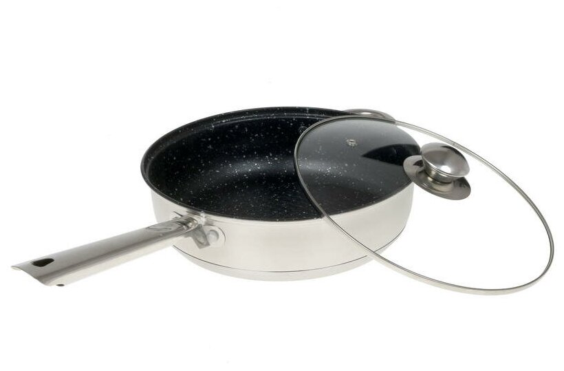 материал крышек: стекло; материал ручек: сталь; многослойное дно; мерная шкала: есть; сковорода с антипригарным покрытием