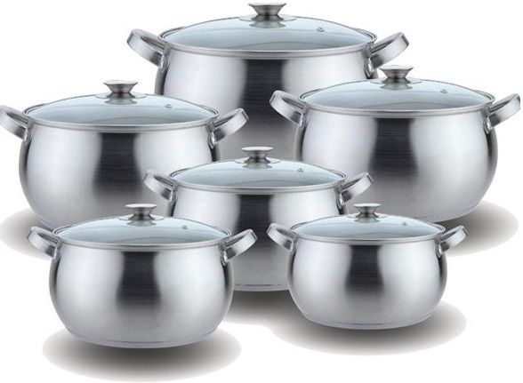 пятислойное дно; кастрюли 2,1 л (16 см), 3 л (18 см), 3 л (18 см), 4 л (20 см), 4 л (20 см), 6,5 л (24 см)