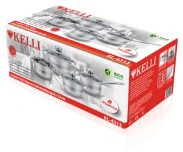 ковш: 2.1 л; кастрюли: 2.7 л, 3.7 л, 5 л; 4 крышки