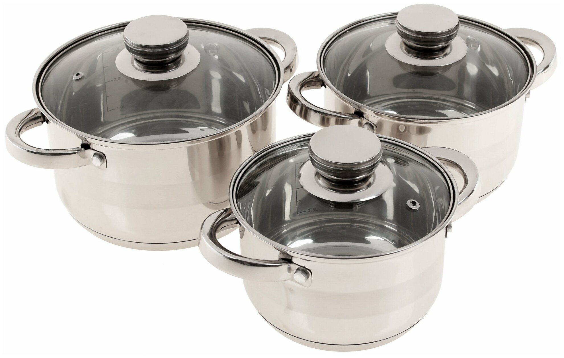 кастрюли: 2.1 л, 3 л, 4 л; 3 крышки