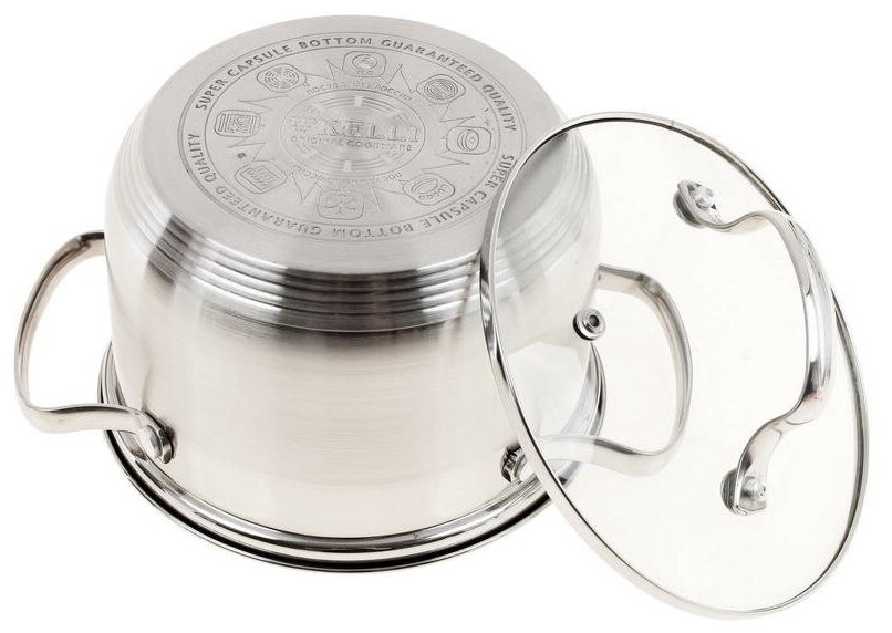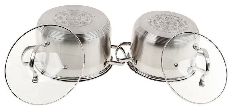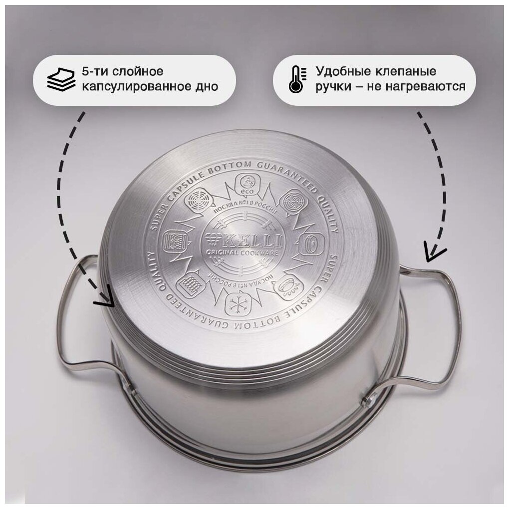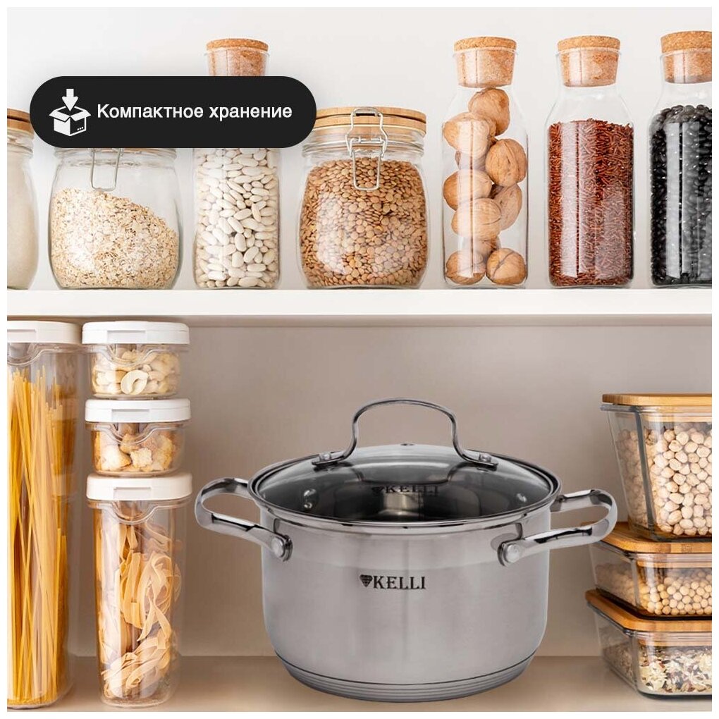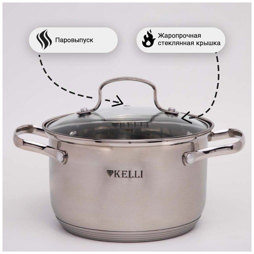 Набор кастрюль Kelli KL-4230 изготовлен из нержавеющей стали с антипригарным покрытием. Комплект состоит из трех кастрюль объемами 2,1 л, 3 л и 4 л и трех жаропрочных стеклянных крышек соответствующего диаметра. Каждая кастрюля оснащена семислойным капсулированным дном и термоизолированными ручками.