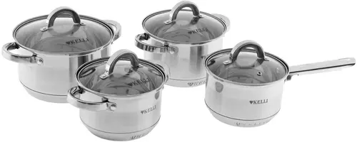 Набор посуды содержит самые необходимые изделия, способствующие созданию комфортных условий на вашей кухне в процессе готовки. Он включает 8 изделия, среди которых три кастрюли различного объема и сотейник. Ко всем предметам предусмотрены стеклянные крышки со стальным обрамлением. В крышке имеются отверстия, через которых в процессе варки выходит пар, не позволяя кипящей воде проливаться на плиту.