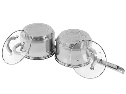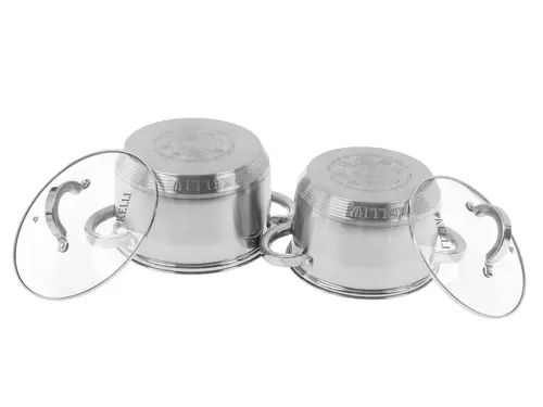Набор изготовлен из нержавеющей стали, что говорит о долговечности изделий. Особенность кастрюль и сотейника в том, что они поддерживают все виды плит, в том числе индукционные. Они обладают семислойным капсульным дном.
