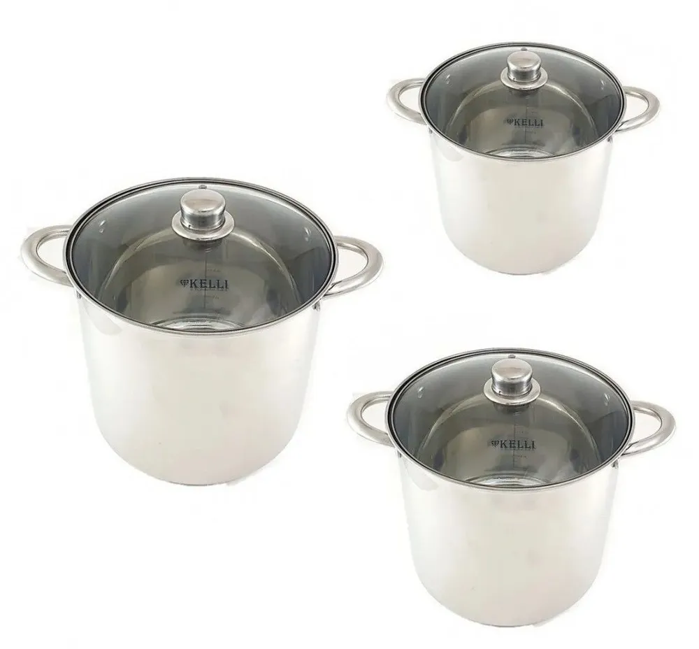 кастрюли: 13.5 л, 11.5 л, 9.5 л; 3 крышки