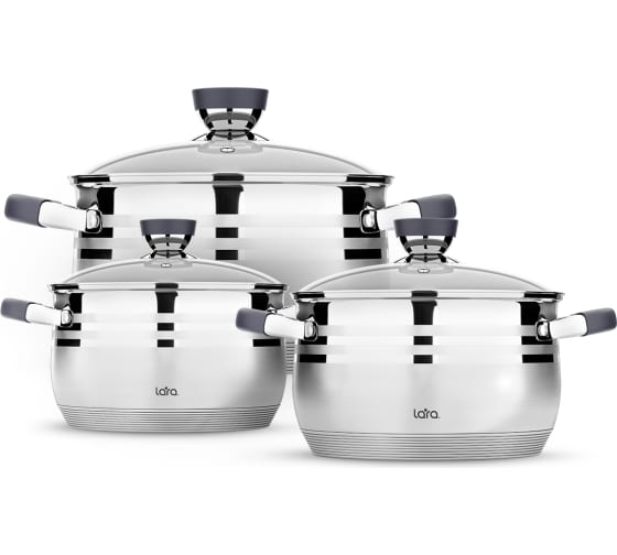 Набор посуды Lara MERCURY 16/18/22 см, 2.1 л, 2.9 л, 4.9 л капсулированное индукционное дно, полировка LR02-121 предназначен для домашнего использования.