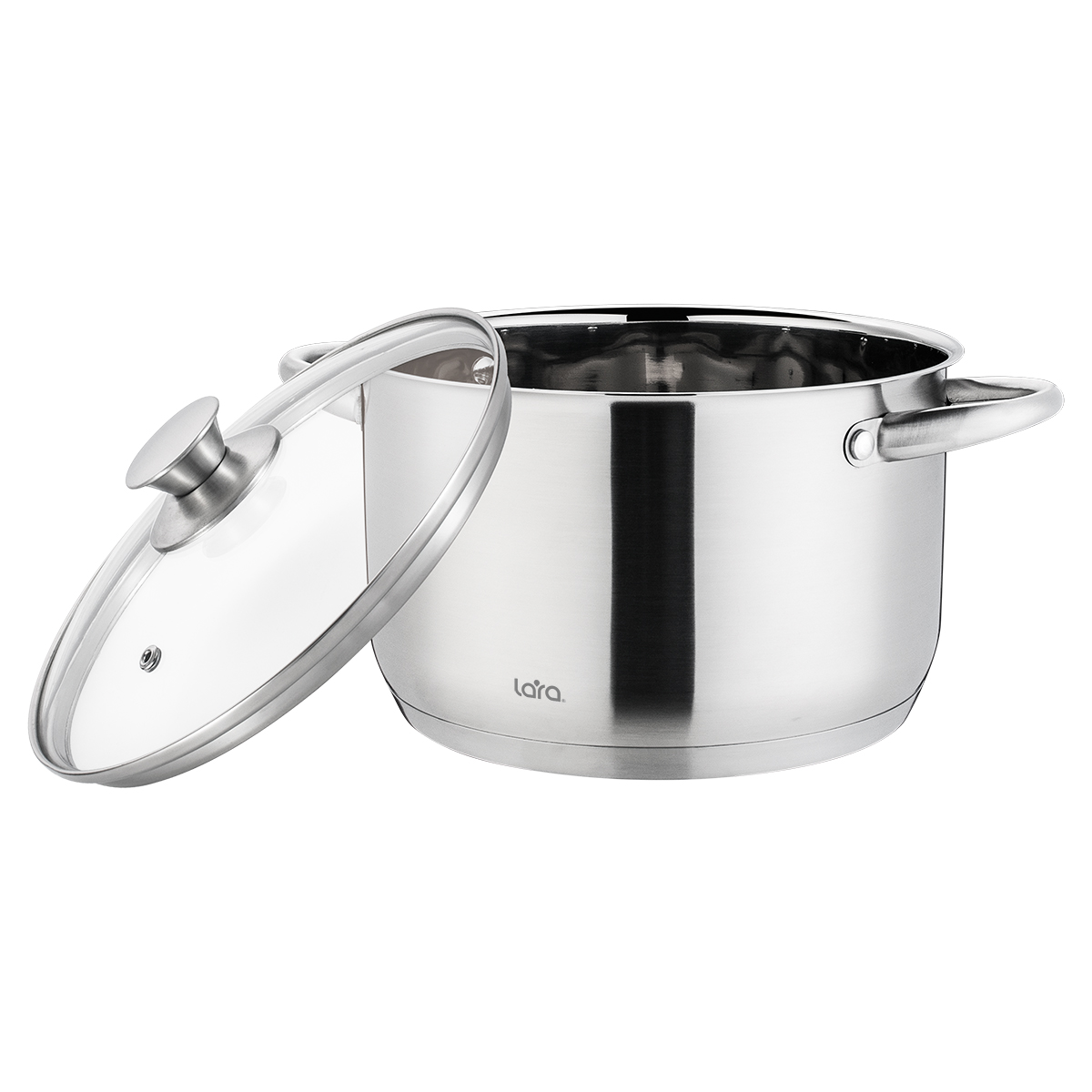 В комплекте 3 кастрюли: 2.1 л, 3.9 л, 6.5 л; 3 крышки