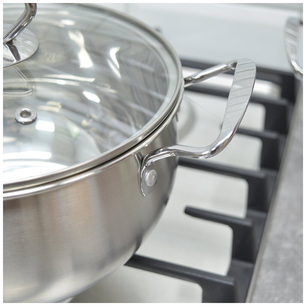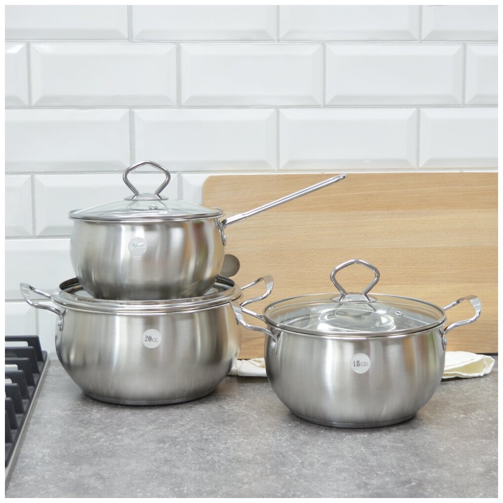 Набор кастрюль MAYER&BOCH выполненных из нержавеющей стали, состоит из кастрюль разного объема с крышками. Это материал, из которого в течение нескольких десятилетий во всем мире производятся столовые приборы, кухонные инструменты и различные аксессуары. Этот материал обладает высокой стойкостью к коррозии и кислотам. Прочность, долговечность и надежность этого материала, а также первоклассная обработка обеспечивают практически неограниченный запас прочности. Кастрюли имеют многослойное капсульное дно с алюминиевым основанием, которое быстро и равномерно накапливает тепло и также равномерно передает его пище. Такое дно позволяет готовить блюда с минимальным количеством воды и жира, сохраняя при этом вкусовые и питательные свойства продуктов. Применение технологии многослойного дна создает эффект удержания тепла - пища готовится и после отключения плиты благодаря термоаккумулирующим свойствам посуды. Диаметры изделий соответствуют общепринятым размерам конфорок бытовых плит. Кастрюли оснащены удобными металлическими ручками, которые не нагреваются в процессе приготовления пищи. Крышки изготовлены из жаростойкого стекла, оснащены ручками, отверстиями для выпуска пара и металлическим ободом. Можно использовать на газовых, электрических, галогенных, стеклокерамических, индукционных плитах. Можно мыть в посудомоечной машине.