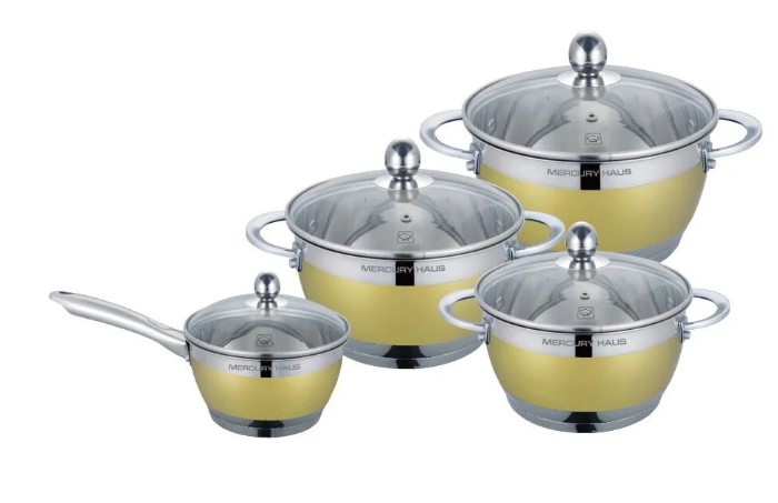 Комплектация-3 кастрюли: 2.1 л, 2.9 л, 4.9 л; ковш 1.5 л; 4 крышки