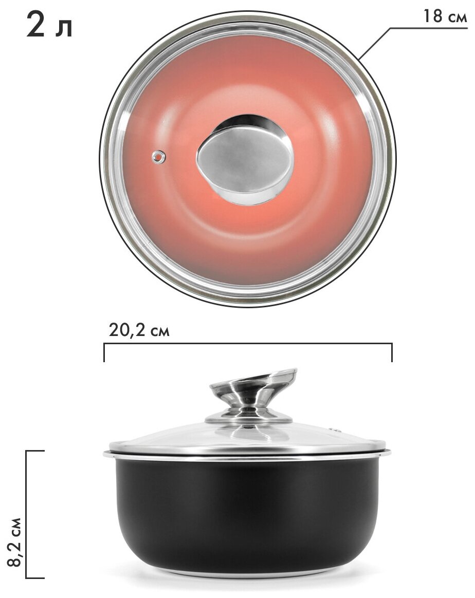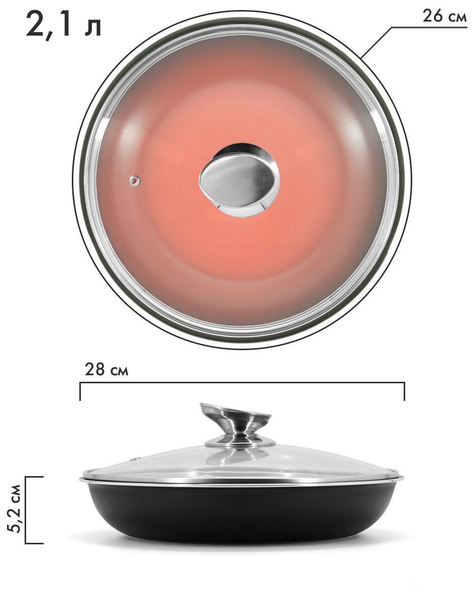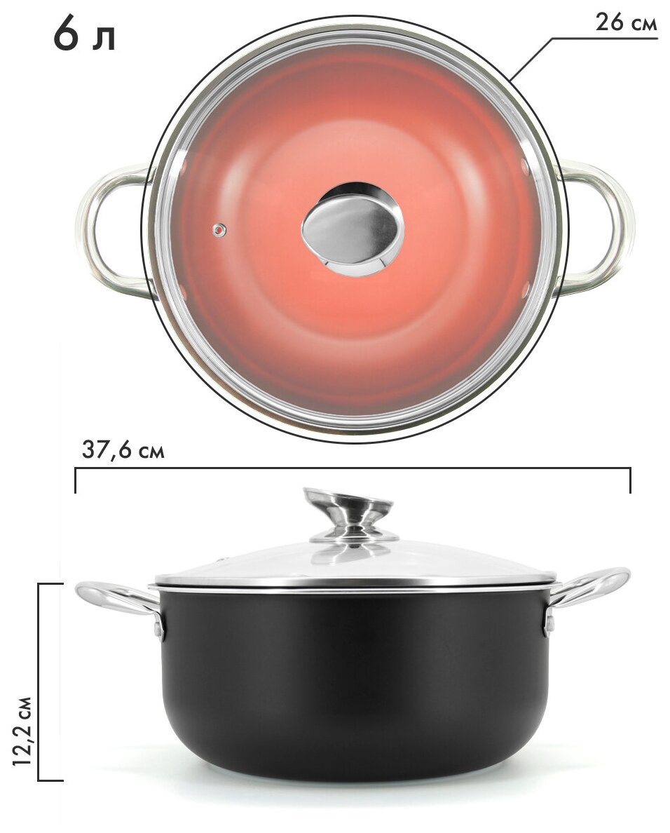 Благодаря толстым стенкам 2,5мм посуда равномерно прогревается, что непременно положительно сказывается на вкусе и внешнем виде приготовленных блюд.