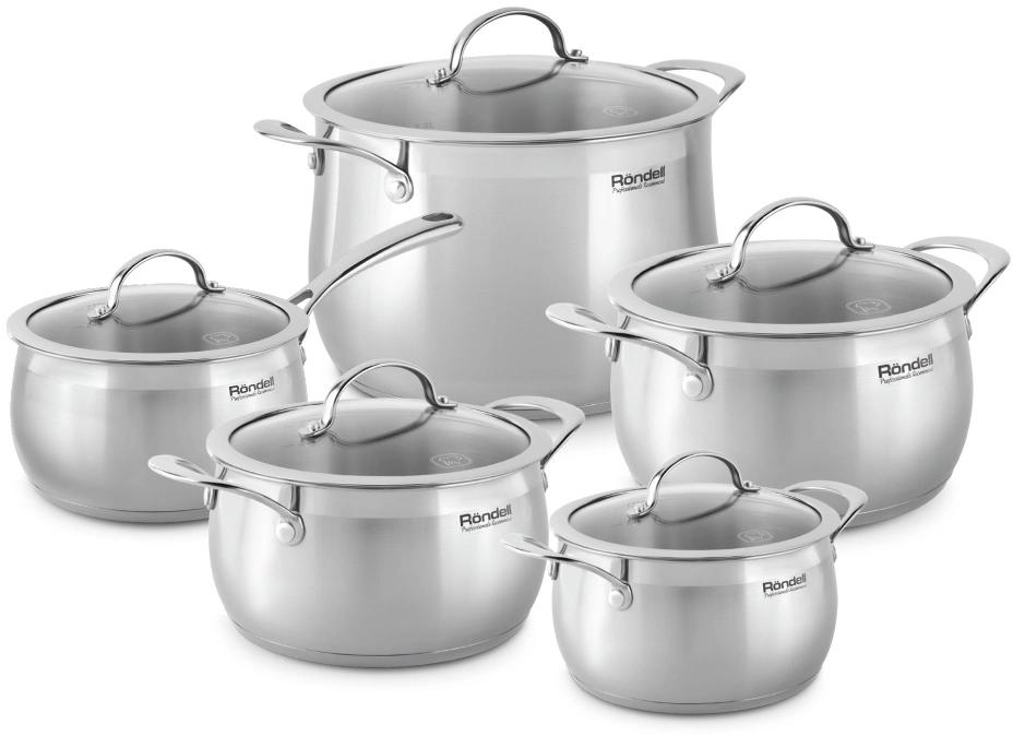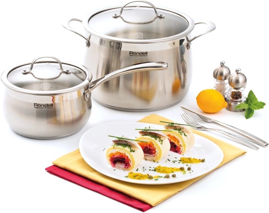 Кастрюли 16 см (1,7 л), 20 см (3,8 л), 22 см (5,3 л), 24 см (7,8 л), ковш 18 см (2,5 л) со стеклянными крышками