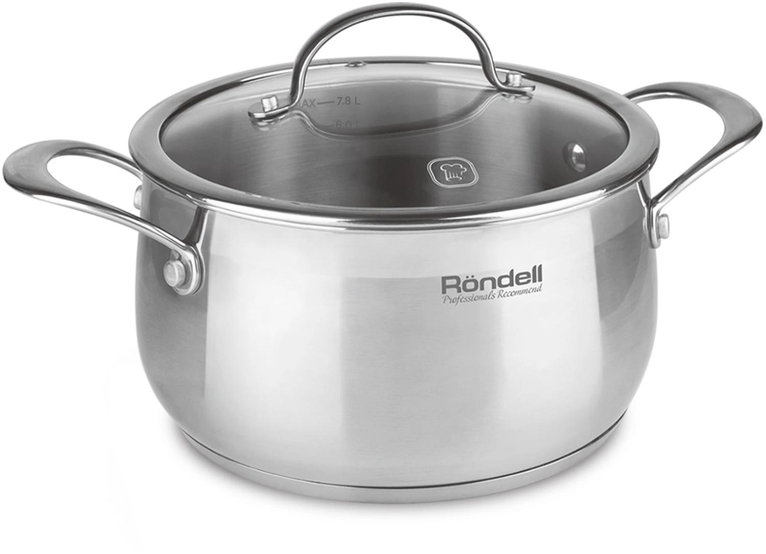 Материал: высококачественная нержавеющая сталь 18/10. Толщина стенок: 0,5 мм. Толщина дна: 5,0 мм. Аксессуары: литые, из нержавеющей стали. Преимущества: эргономичная форма ручек равномерный прогрев изделия; округлая форма корпуса; высокие стенки корпуса – большой литраж посуды.