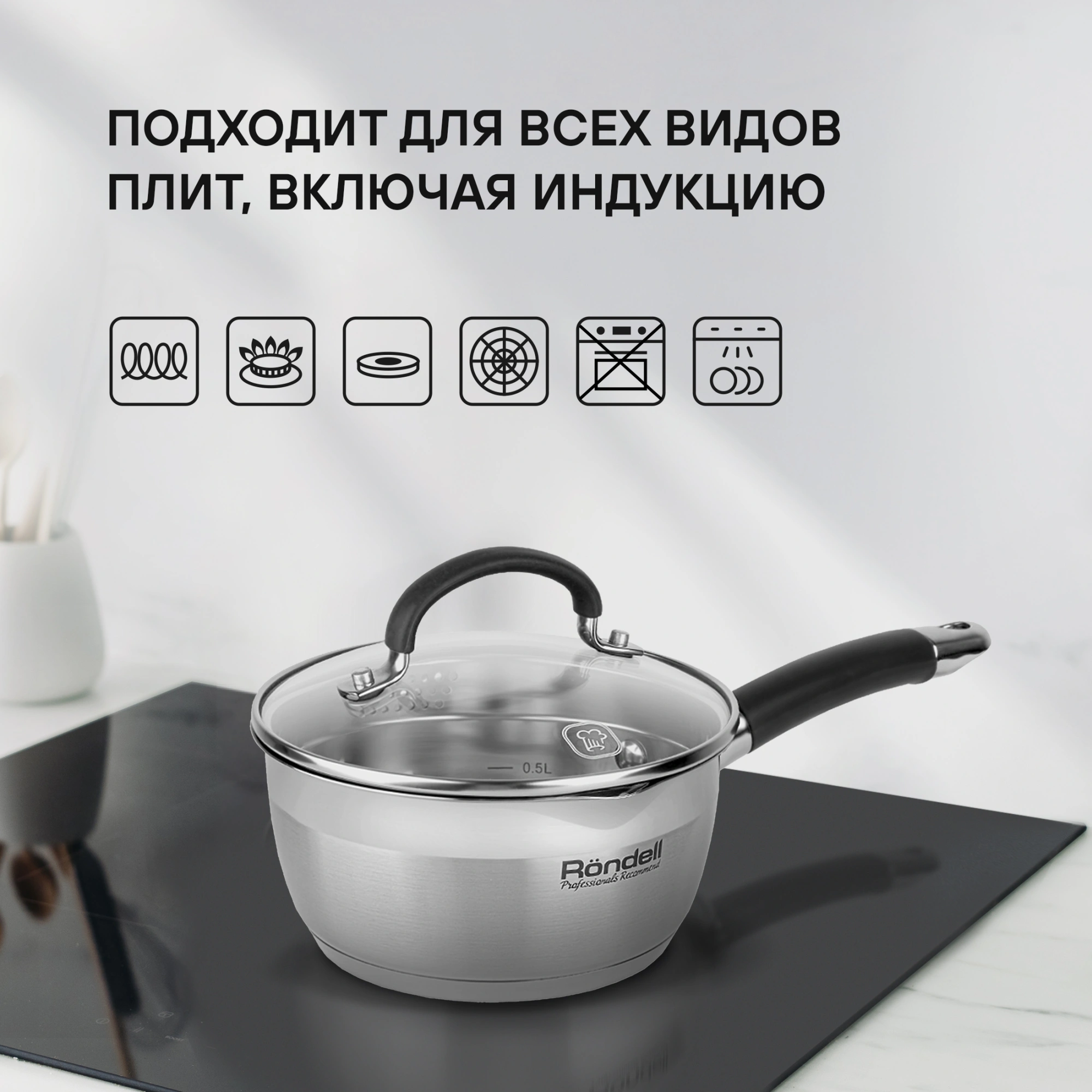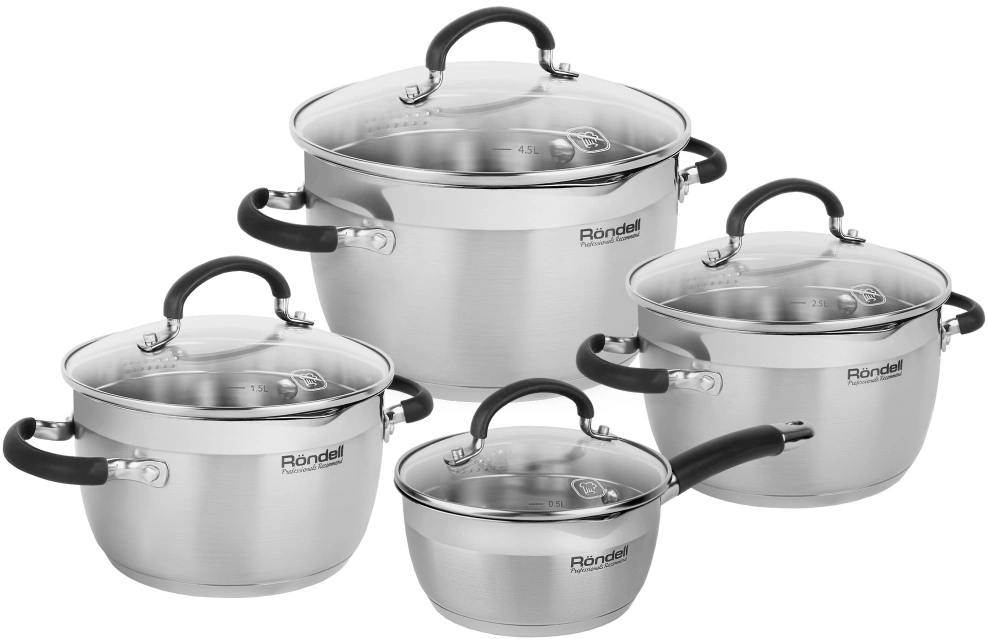 Кастрюли 18, 20, 24 см, ковш 16 см со стеклянными крышками