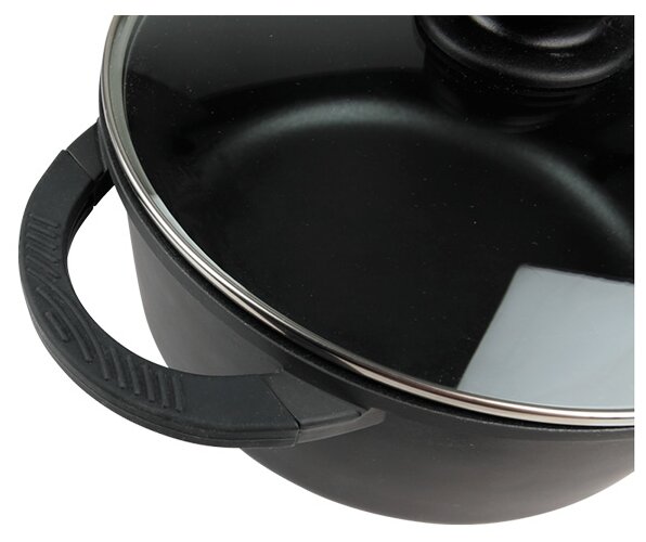 Внешнее покрытие посуды выполнено из матового полиэстера, устойчивого к высоким температурам. Посуду удобно перемещать с места на место благодаря надежным термоизолированным ручкам из бакелита. Силиконовые вставки на ручках препятствуют скольжению.