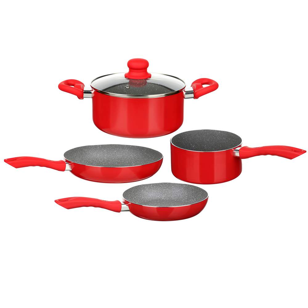 кастрюля 2.8 л; ковш 1.6 л; сковороды 20 см., 28 см; крышка