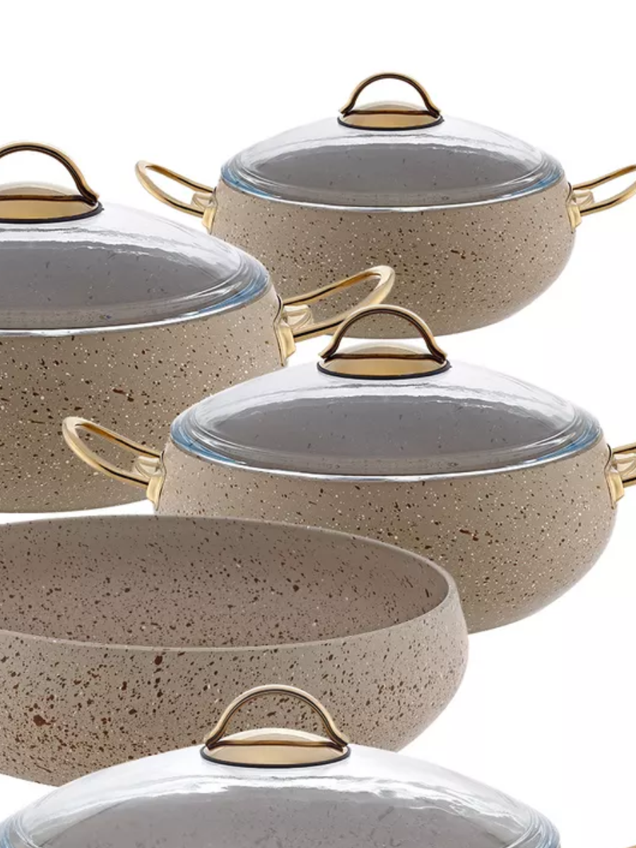 Комплектация кастрюля - 3 шт.; жаровня - 1 шт.; сковорода - 1 шт.; крышка - 4 шт.