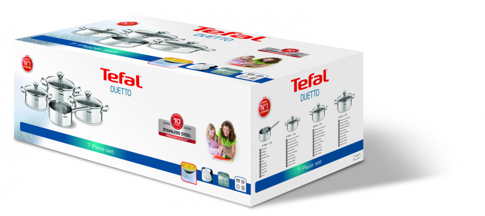Описание: Серия Tefal Duetto сочетает умные и современные характеристики с премиальным качеством для долговечного использования. Кастрюля и сотейник оснащены носиками для переливания соусов и перекладывания блюд без капель вокруг. В комплекте продуманная крышка для быстрого и практичного сливания жидкости.